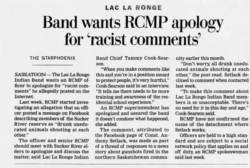 Racism is definitely alive and well in the Prairies. If you go through the local newspaper archives looking for examples of racism, you will not be at a loss. Here is one incident: