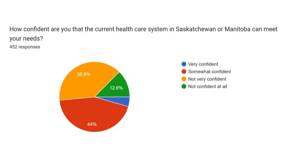 A majority of respondents across both provinces said they were “not very confident” or “not confident at all” that the healthcare system could meet their needs.