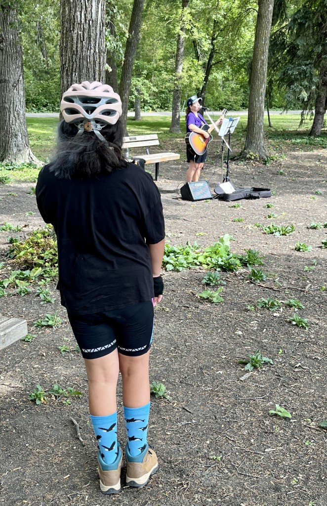 I wasn’t expecting to stumble across a concert in the trees. But one sunny afternoon, while out for a bike ride in St. Vital Park in Winnipeg with my 10-year-old stepdaughter Arailia, we heard music drifting across the duck pond.