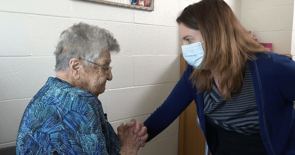 Heather, a nursing instructor at the University of Regina and Saskatchewan Polytechnic, is visiting Clementina as part of a study on what brings 100-year-olds joy. She is also curious about their thoughts and plans for the future.